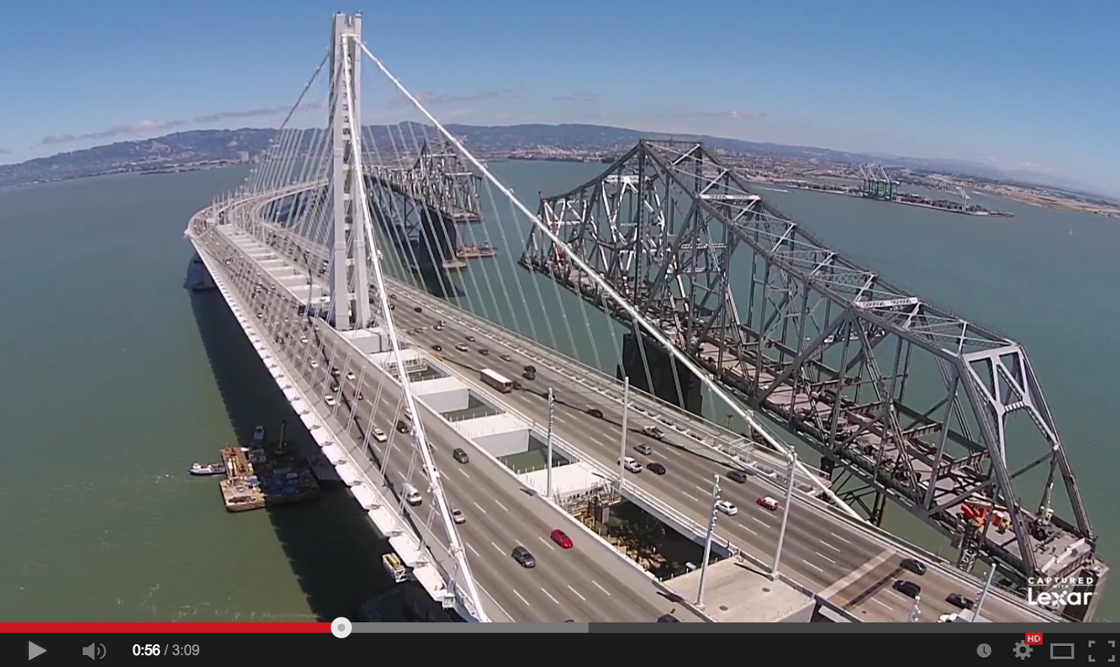 But, since it was perfectly clear at the Bay Bridge, and this was a rare time to see both the new segment and the dismantling of the old segment, I decided that this would be my first stop. I got off at Treasure Island, which exists in the middle of the two spans of the Bay Bridge. I flew the Phantom towards the bridge from a distant location and decided that it was just too far away. I wanted to keep the Phantom in my vision while shooting the video. So, after driving around the small island for a while, I found a closer location where I could launch the flying camera and see it the whole time.